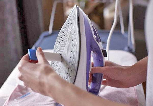 - Очистите поверхность подошвы утюга от пыли и грязи с помощью мягкой тряпки или ватного шарика, смоченного в спирте.